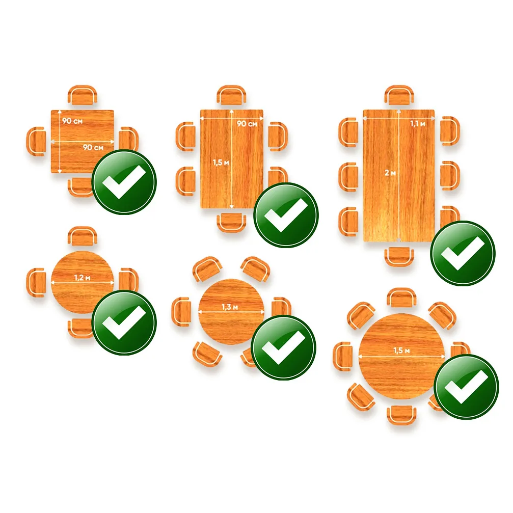 Ідеальний розмір 200х140 см. ідеально підходить для різних видів столів, від 4 до 8 персон.